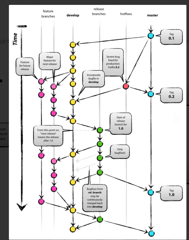 3. 개발이 완성된 시점 : release 브랜치 ( from develop )에서 테스트 -> 눈에 띄면 버그만 release에서 작업
